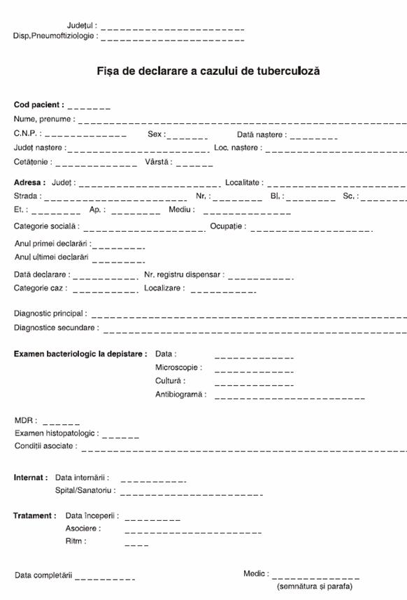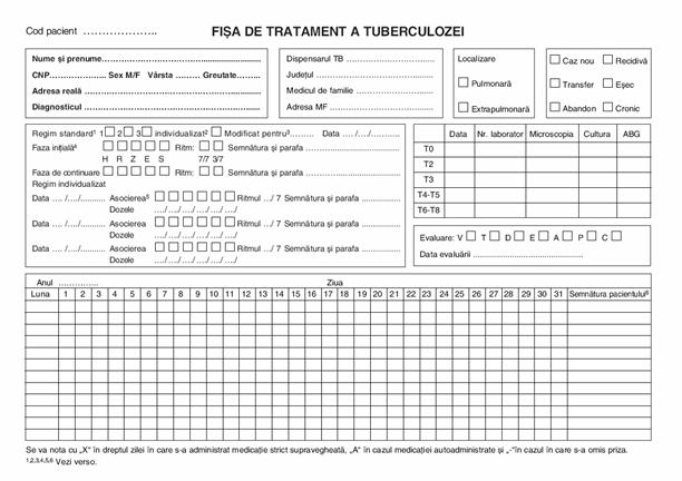 Toate informatiile mentionate mai sus se gasesc sintetic pe "Fisa de tratament a bolnavului de TB".