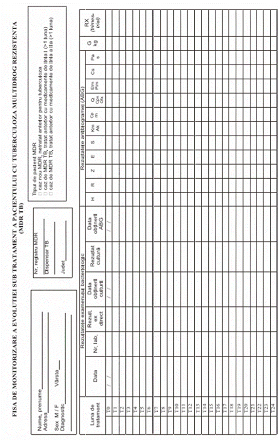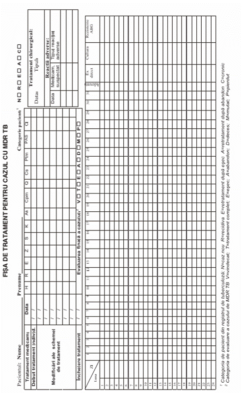 Anexa 13: Fisa de tratament pentru cazul cu TB MDR
