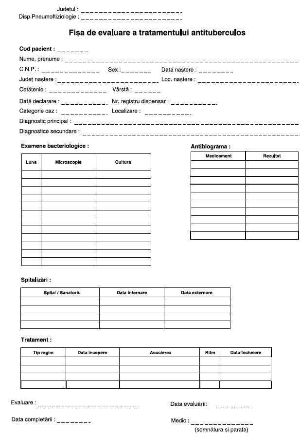 Anexa 14: Fisa de evaluare a tratamentului antituberculos