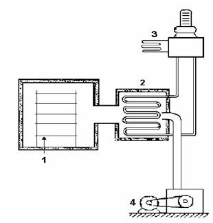 1 - evaporator; 2 - camera de condensare; 3 - vid.
