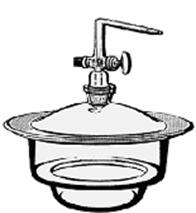 Exicatoarele sunt recipiente cu peretii grosi de sticla, care pot fi acoperite etans cu un capac si care servesc la uscarea unor substante (fig. 4). Unele exicatoare au la partea inferioara un compartiment peste care se gaseste o placa de portelan ce serveste drept suport pentru vasele continand materialul de uscat. Compartimentul inferior serveste pentru introducerea unor substante higroscopice care fixeaza umiditatea: clorura de calciu calcinata, oxid de calciu, acid sulfuric concentrate, silicagel. Pentru a grabi uscarea, unele exicatoare pot lucra si la vid. In acest caz, capacul exicatorului este prevazut cu un robinet care este pus in legatura cu sursa de vid.