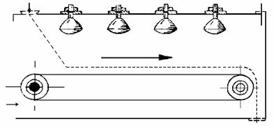 Un uscator prin pulverizare cu disc este redat in fig.1. Lichidul porneste dintr-un rezervor si apoi trece fortat prin discul care se roteste si se transforma intr-un nor fin (nebulizat). Rotorul in forma de disc se roteste cu 5 000 - 25 000 rotatii/min si disperseaza lichidul in particule cu dimensiuni de 0,01 - 0,005 mm. Aerul incalzit trece peste particule de jos in sus, se satureaza partial cu vapori de apa si se raceste pana la 50, dupa care este evacuat. Intr-un timp foarte scurt de 1/40 din secunda, o particula de lichid se transforma in pulbere foarte fina uscata. Aceasta se depune la partea inferioara. Partial pulberea poate fi antrenata de curentul de aer, dar este retinuta de un filtru. Un sistem special de perii si benzi de transport efectueaza evacuarea produsului uscat.