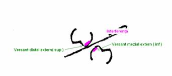 interferenta in propulsie pe partea nelucratoare ce apare intre M3 inf si M2 sup nu mai permite o deplasare direct sagitala asupra M in timpul ghidajului anterior;