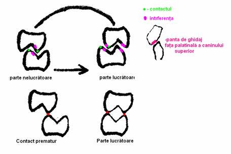 pentru a se putea realiza trebuie sa existe ocluzie I Angle ( caninul inferior sa fie situate cu ½ inaintea celui superior, numai asa poate aluneca integral pe suprafata celui superior).