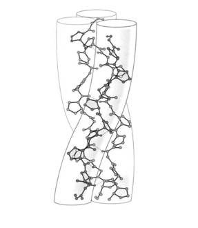 Impachetarea stransa a lanturilor din triplu helix ii confera o rezistenta la tensiune mai mare decat cea a unei sarme de otel cu aceeasi grosime.