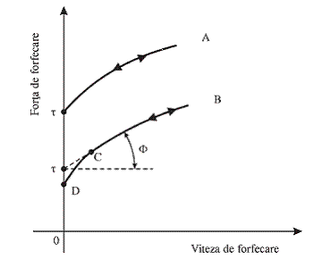 Reprezentand viteza de forfecare D (sec-1) in functie de forta de forfecare τf (dyne cm-2) aplicata, se obtine curba de curgere (reograma) a corpurilor plastice (grafic.1).