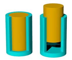 Cele doua sub-unitati ale ancorarii telescopice formeaza o singura entitate functionala si, in functie de tipul de reconstructie protetica, pot ramane unite intre ele cu ciment provizoriu sau permanent, suruburi de fixare sau, chiar fara a se folosi nici un fel de ciment, recurgandu-se la sisteme de ancorare frictionala sau mecanice (fig. 5).