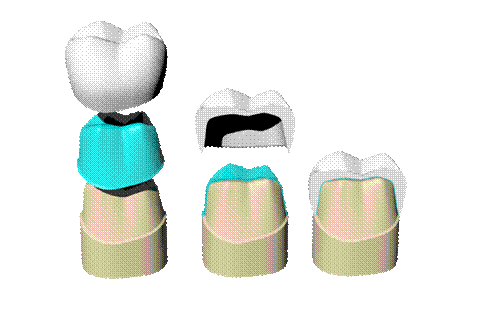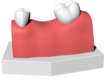 Reconstructia protetica cu dubla coroana a pilierului cel mai apropiat de zona candidata la o viitoare proteza, permite integrarea protezei executate intr-un prim stadiu, sacrificandu-se doar matricea singurei parti construite cu o dubla structura. Lipsa primului premolar presupune pregatirea celor doua elemente alaturate pilierilor de punte. Daca elementele reziduale sufera afectarea unei parodontale avansate si sunt fixate printr-o proteza acrilica, nu trebuie exclusa necesitatea unei blocari de tip protetic care sa includa si elementele dentare, pilieri ai actualei proteze. Pe elementele pregatite se construieste o proteza cu punte, cu aspect normal, constituita dintr-o coroana dubla pe elementul mezial.