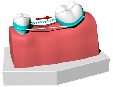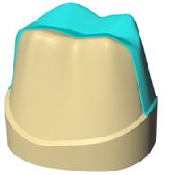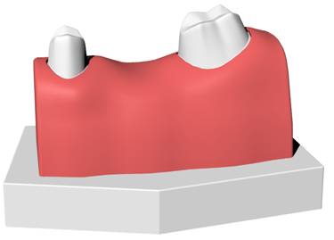 In aceasta situatie, aplicarea principiului telescopic necesita timpi aditionali minimi, deoarece, de obicei, nu sunt necesare faze clinice si de laborator aditionale, decat pentru realizarea coroanei primare. La sfarsitul fazei de pregatire, ramane o mezio-inclinatie a pilierului distal care nu concorda cu axa de insertie a dintilor limitrofi meziali. Construirea unei cape primare care sa restabileasca omogenitatea axelor de insertie reprezinta o solutie simpla, rapida si sigura.