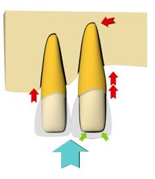 In cazul mobilitatii verticale a unui pilier, in momentul cimentarii, presiunea hidrodinamica a cimentului ar putea provoca adancirea pilierului in alveola. Daca proteza nu se poate deplasa dupa acest pilier din cauza altuia cu o mobilitate mai mica, adancirea in alveola se va manifesta ca o neadaptare marginala la nivelul elementeului mai mobil