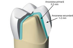 Grosimea ancorarii primare ajunge in general la aproximativ 0,3 mm. Altfel, va trebuie sa reduca mai mult din pilier. Reducerea totala va fi in functie de tipul de ancorare secundara, variind de la minim in cazul unei coroane foarte subtiri, pana la maxim, in cazul unei coroane de aur-portelan pentru partile posterioare. Valorile de care trebuie sa se tina cont sunt urmatoarele: