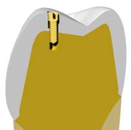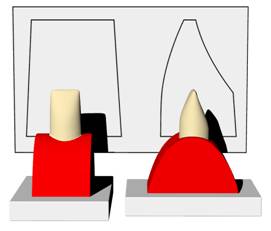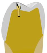 In cazul in care pilierul inclinat este constituit doar din restul radicular al unui dinte apectomizat, dimensiunile extrem de reduse ale dintelui limitrof nu permit nici o reducere ulterioara in scopul obtinerii paralelismului. Acesta va putea fi obtinut prin construirea unei coroane primare pe acelasi ax cu ceilalti pilieri, ceea ce va permite realizarea unei proteze dupa tehnicile conventionale