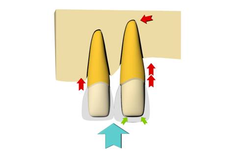 Patricea va putea forma singura pilierul sau se va alatura celorlalti pilieri naturali pentru aspectul viitoarei proteze. Se poate prevedea, din momentul planificarii tratamentului, evolutia clinica a cazului; proteza va putea fi construita pe baza unor dimensiuni care sa asigure o maxima flexibilitate.