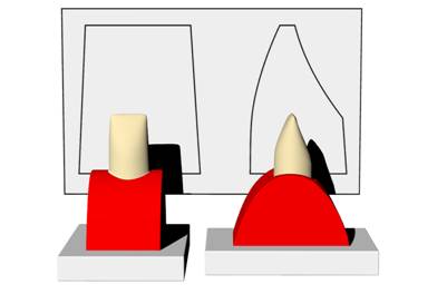 Este foarte important sa se tina cont de faptul ca portiunea functionala a unei cape primare este intotdeauna inferioara fata de dimensiunile totale ale pilierului. Altfel nu ar fi posibila respectarea corectei morfologii a coroanei secundare.