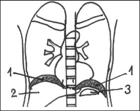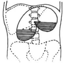 organ : hiper-transparente semilunare, bazale, bilaterale ; 2 - ficat ;