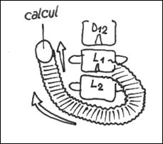 aerul si materiile fecale mai pot fi inca constatate in colonul distal, indicand ca torsiunea este incompleta;