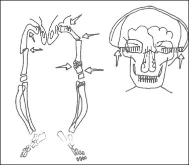 procesul patologic, poate interesa un singur os, doua oase vecine, doua oase simetrice, doua oase la distanta, mai multe oase, afectarea sistematizata si generala a scheletului;