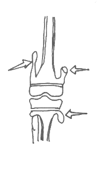 la limita diafizo-epifizara se poate observa o linie transversala opaca, groasa de citiva mm, care reprezinta cicatricea cartilajului de crestere;