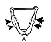 distanta h (normal de 6 mm) lipseste din partea luxata ;