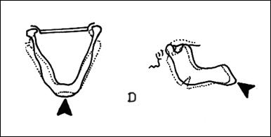 conturul extern al compactei are o delimitare neta, conturul intern fiind mai putin precis delimitat, cu aspect sters;