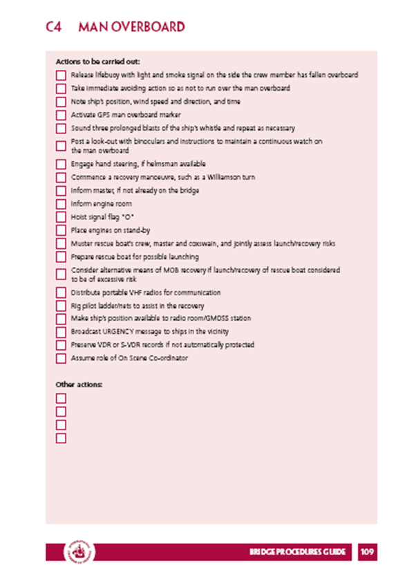 Aceste actiuni sunt extrase din ghidul de proceduri pe puntea de comanda "BRIDGE PROCEDURES GUIDE".
