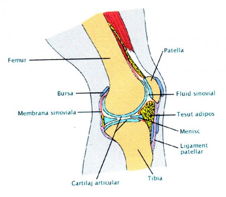 Genunchiul uneste femurul cu tibia si cu rotula. Adaptarea perfecta a suprafetei articulare a femurului cu cea a tibiei este asigurata prin existenta a doua formatiuni fibrocartilaginoase, denumite MENISCURI.