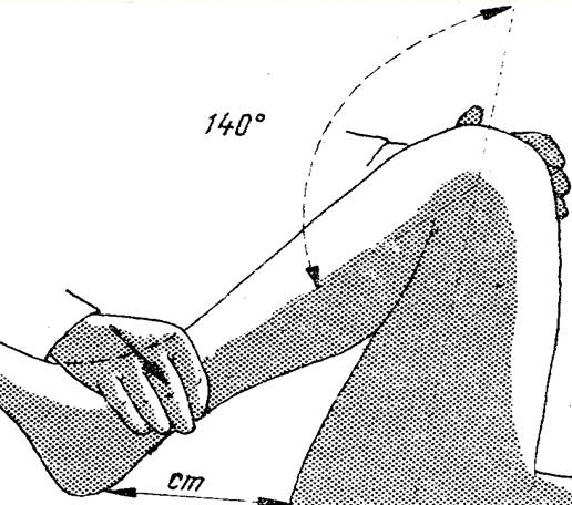 - Flexia activa a genunchiului o masuram cu goniometrul : În mod normal este de 120º daca articulatia coxo - femurala este in extensie si de 140º in cazul cand articulatia coxo - femurala este tinuta in flexie .