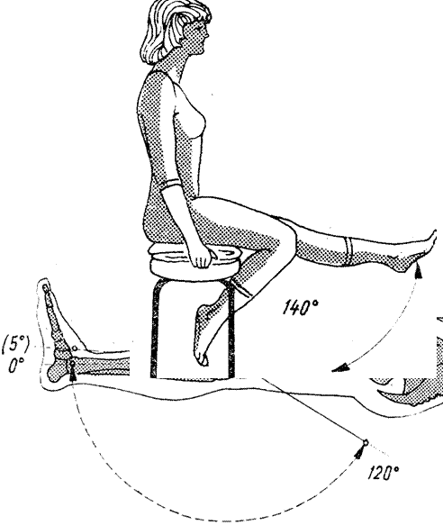 2. Pacientul in decubit dorsal sau sezut gamba la marginea mesei; pe 1/3 superioara a gambei si la nivelul gleznei se atarna greutati la glezna una care sa reprezinte doar jumatate din valoarea celei atarnate la gamba pentru a evita un impact articular prea mare.