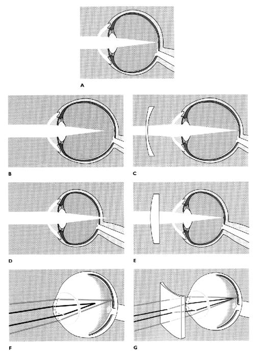 Ochiul poate fi astfel comparat cu un aparat fotografic in care imaginea formata pe retina este reala, mai mica si rasturnata, dar noi o vedem dreapta prin adaptare psihocorticala. Ca instrument optic convergent, ochiul ofera pentru un obiect situat la infinit, o imagine formata pe retina.