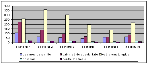 Din cele prezentate mai sus, reiese faptul ca sectorul 1 ocupa un loc fruntas in ceea ce priveste numar de cabinete medicale si cabinete stomatologice.