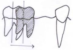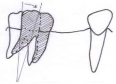 Bascularea reprezinta migrarea dintilor intr-un plan orizontal avand ca rezultat o inclinare a axului longitudinal al dintelui in noua pozitie de implantare fata de axul de implantare al pozitiei initiale. Ecuatorul de implantare al dintelui se modifica devenind ecuator de malpozitie, de cele mai multe ori influentand negativ calitatile campului protetic, (fig.8)