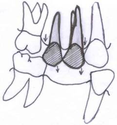 In urma bascularii, molarii superiori (avand axul de implantare orientat in jos, spre distal si vestibular) pot capata o pozitie de implantare mai favorabila protezarii prin punte, inclinarea axului lor apropiindu-se de verticala. Molarii inferiori (avand axul implantarii orientat in sus, spre mezial si lingual) capata cel mai frecvent prin basculare, o pozitie de implantare si mai nefavorabila protezarii prin punte.