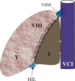 Figura 3. Delimitarea anterioara a LC prin scizura portala dorsala. |