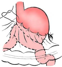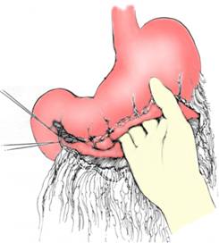 Fig. 1 - Eliberarea marii curburi gastrice (4)