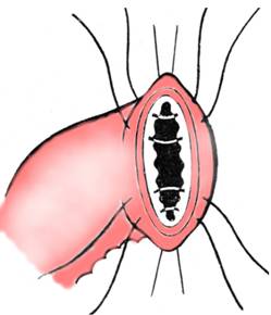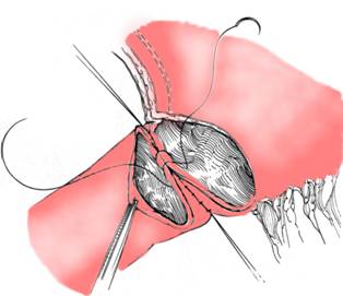 Procedeul cu bont deschis consta in executarea a doua planuri de inchidere a bontului, cu fire separate realizate intre doua repere comisurale (Fig. 6).