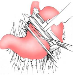 Fig. 2 - Eliberarea micii curburi gastrice (4)