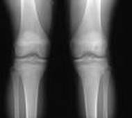 RC perpendiculara pe caseta; intra la partea anterioara a interliniei articulare. Film de 18x24 cm, in lung, marginea proximala a casetei la un lat de mana deasupra nivelului rotulei; marginea anterioara la doua laturi de deget de fata anterioara a rotulei.