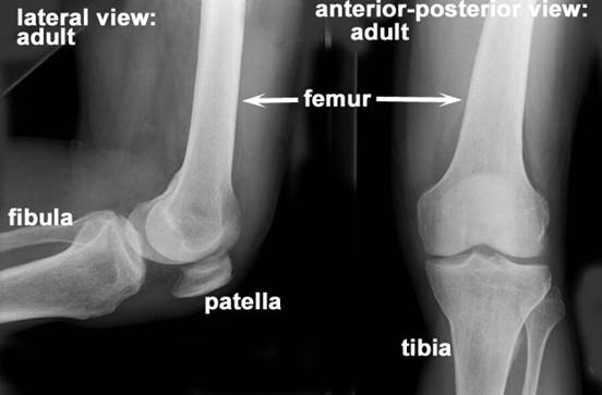 RC perpendiculara pe caseta; intra la un lat de deget sub varful rotulei. Film de 18x24 cm, in lung; marginea proximala a casetei la un lat de mana deasupra rotulei; marginea mediala si cea laterala la egala distanta de partile moi.