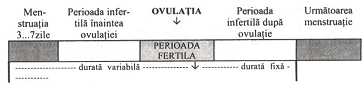 Dupa un anumit timp apar primele semne de fertilitate care anunta ovulatia. Perioada fertila este stabilita in functie de metoda de determinare folosita, variind de la 6-7 zile la 20-22. Ovulul expulzat lunar (in mod exceptional doi sau mai multi, de unde si sarcinile gemene) ajunge in trompa, unde poate fi fecundat in urmatoarele 6-24 de ore. Daca ovulul nu a fost fecundat el se va pierde odata cu menstruatia, postovulator urmeaza o perioada fixa de 12-16 zile, dupa care apare urmatoarea menstruatie.