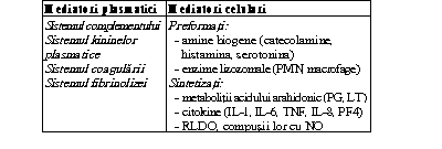 Tabel I - Mediatori chimici elaborati in timpul reactiei inflamatorii |