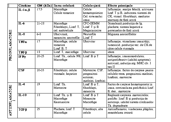 Tabel II - citokinele implicate in reactia inflamatorie. |