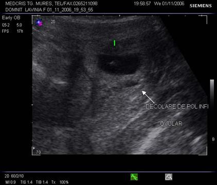 hematomul mic de sinus marginal (evident ca o decolare anecogena) la polul inferior al sacului gestational are prognostic relativ bun