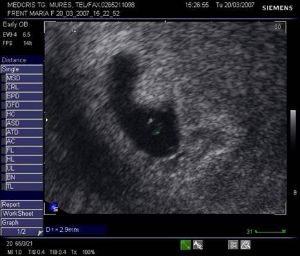 Pentru a nu face o eroare de diagnostic in prezenta unui sac gestational prea mic , posibil al unei sarcini incipiente, o reevaluare la o saptamana va fi necesara.