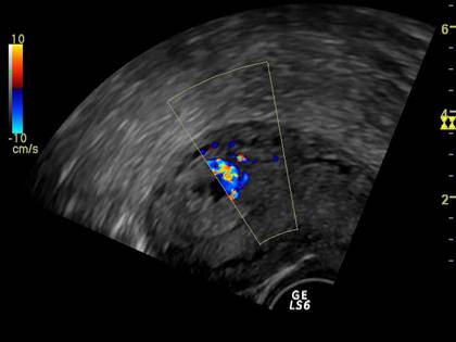 Fig. nr. 89. Flux sangvin la Doppler , cu vascularizatie puternica , dupa chiuretajul molei invazive si persistente