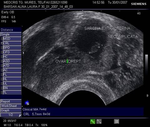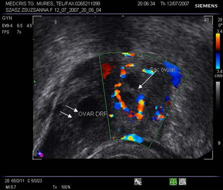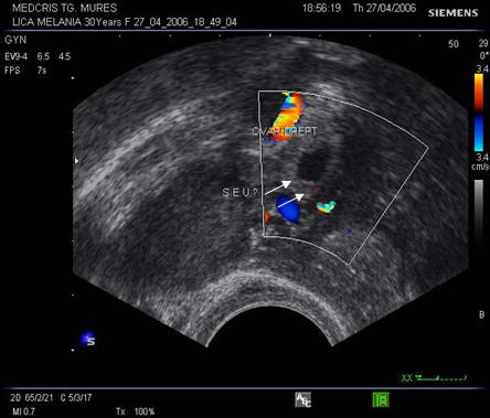 exam doppler color, embionul din sacul extrauterin are activitate cardiaca ( cu