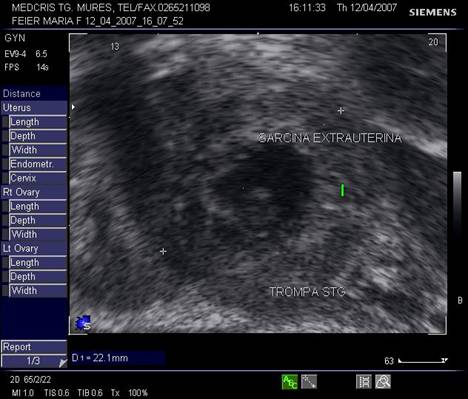 Diagnostic : marea majoritate a sarcinilor ectopice se pun in evidenta prin ecografie transvaginala, dar acest lucru depinde mult de experienta examinatorului.