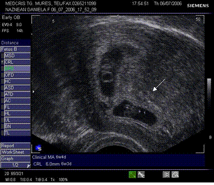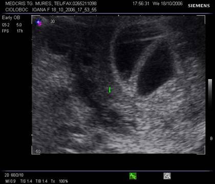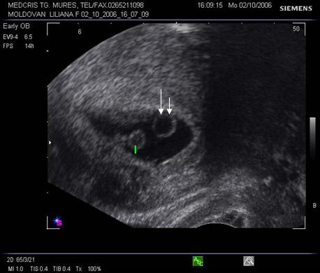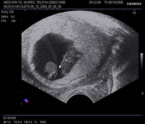 vitelina anormal de mare ( cu doua sageti ) si fara embrion indica o sarcina