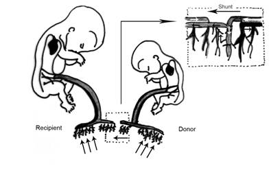 Fig.nr.48 Fiziopatologia sindromului transfuzor-transfuzat , adaptat dupa Merz[4]