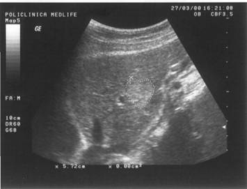 solid[. Partea solid[ ]n proporie de 40%, cu ecostructura hiperecogen[