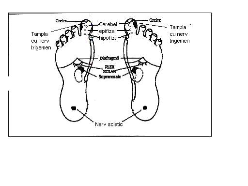 zone reflexe cap (toate punctele) - 5-10 minute pe fiecare picior